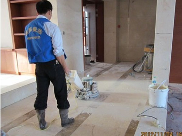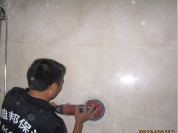 迪邦保潔公司保潔員正在為“暨陽(yáng)福建商會(huì)”做地面、墻面石材翻新